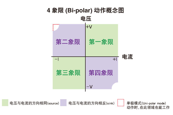 在雙極模式(Bi-polar)時的吸收功率(sink)的最大值為:100W(PBZ20-20),180W(PBZ40-10),200W(PBZ60-6.7/PBZ80-5)