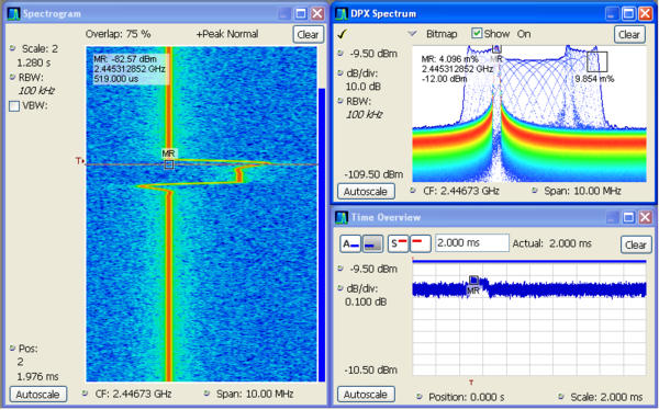 DPX®頻譜處理技術(shù),使用基于發(fā)生頻次的顏色等級畫面,直觀地理解隨時間變化的 RF 信號